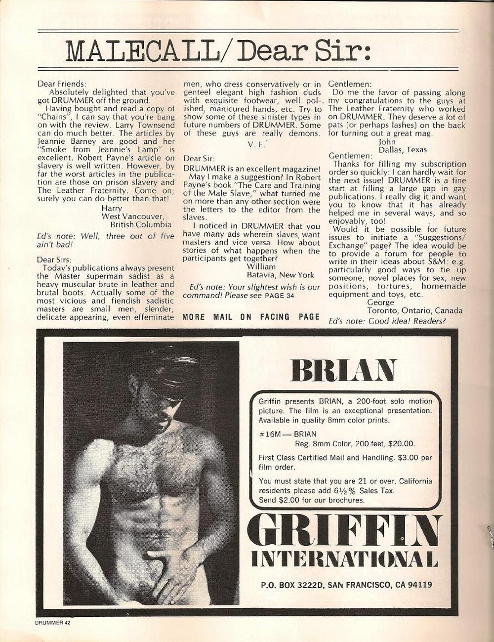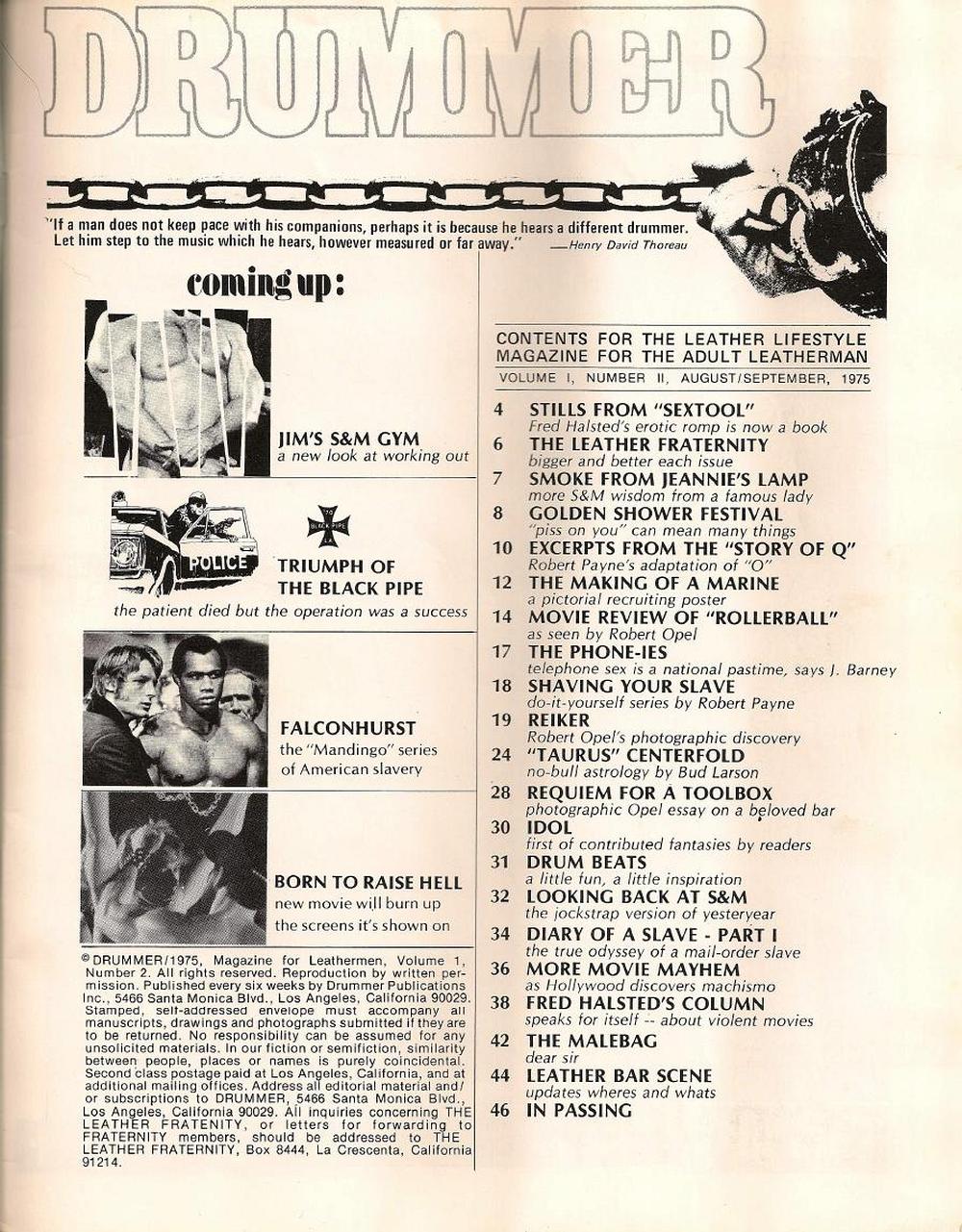 Drummer Magazine Issue 2 August 1975 Cover: publicity photo by Fred Halsted from his film, Sextool